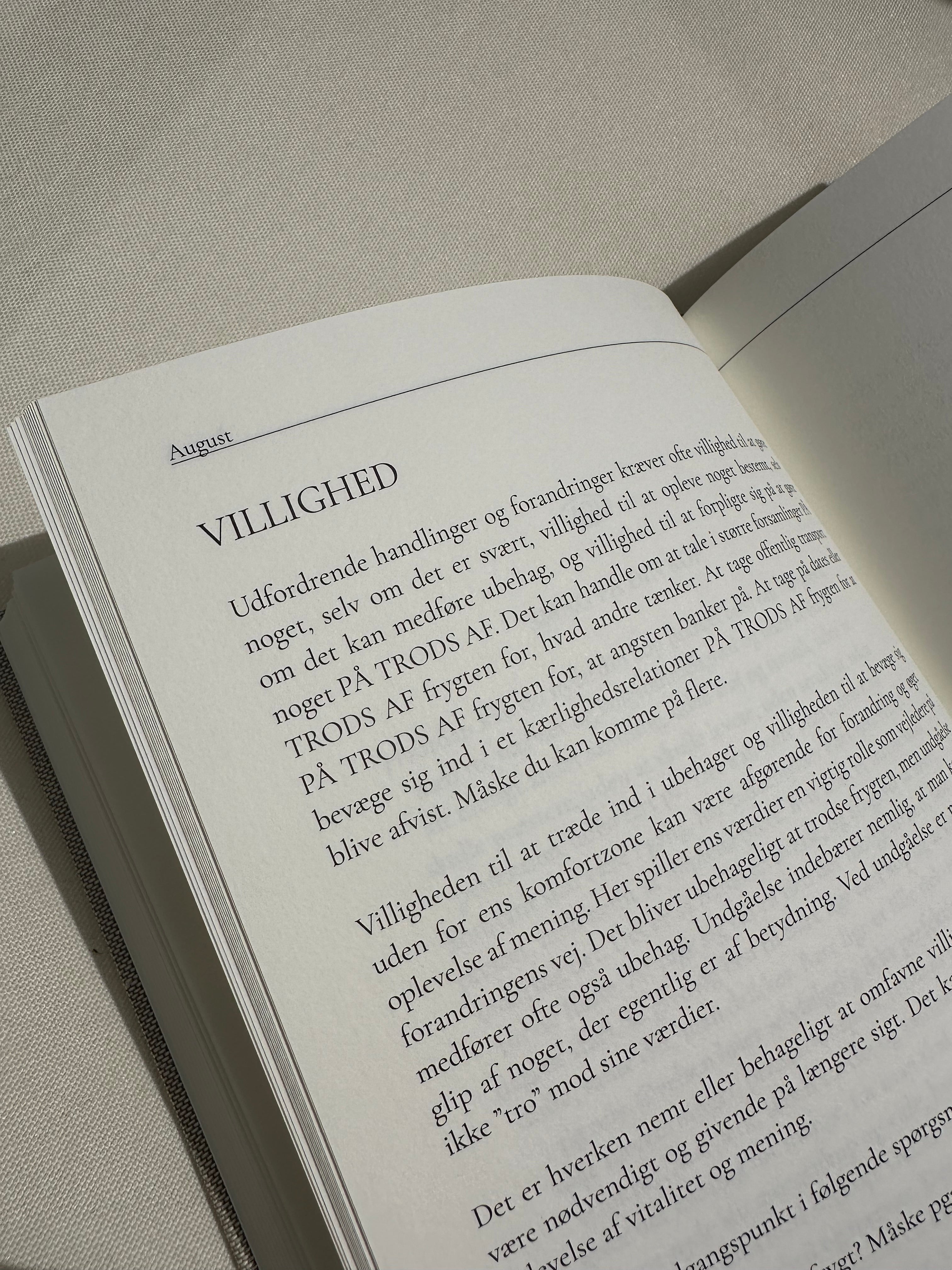 “Både min søster og jeg er kommet i gang med bogen. Vi er begge ellevilde med teksterne og formatet. Det er så utrolig velskrevet, omsorgsfuldt og behageligt at læse. Det er så berigende at skulle tage aktiv stilling og finde sin egen vej ved hjælp af bogen. At det ikke "bare" er endnu en selvhjælpsbog, hvor det til tider kan føles som om man efterlades med en masse "du-skal, du-bør, og så bliver du lykkelig", men at man bliver guidet til at mærke efter, finde og dyrke sig selv. Jeg føler virkelig - og især nu med to små børn som fylder - at det er noget af det rareste at åbne jeres bog og tage tid til mig. Tusind tak!”